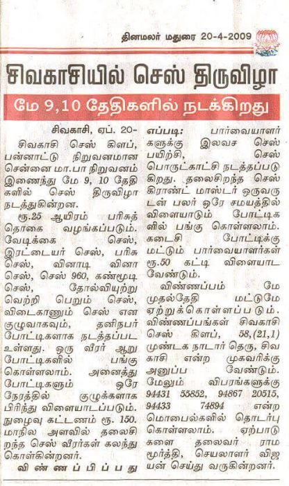 2009 State level Chess festival Press