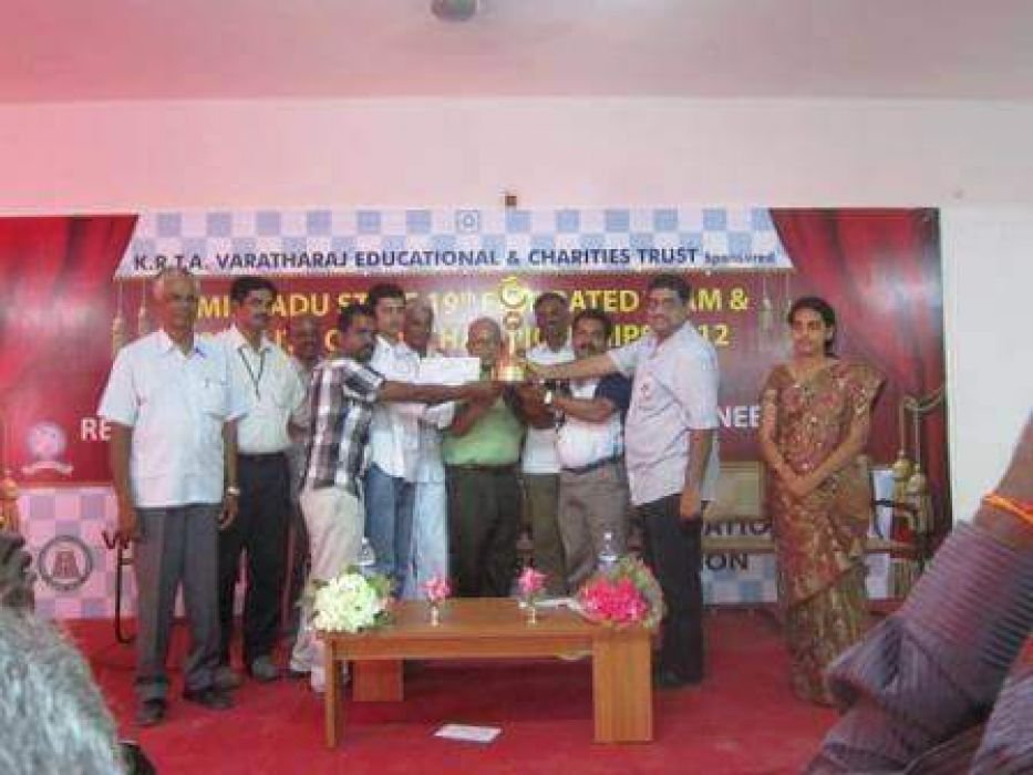 2012 ICF team reciving the RVCE trophy for winning the TN State FIDE Rated team championship