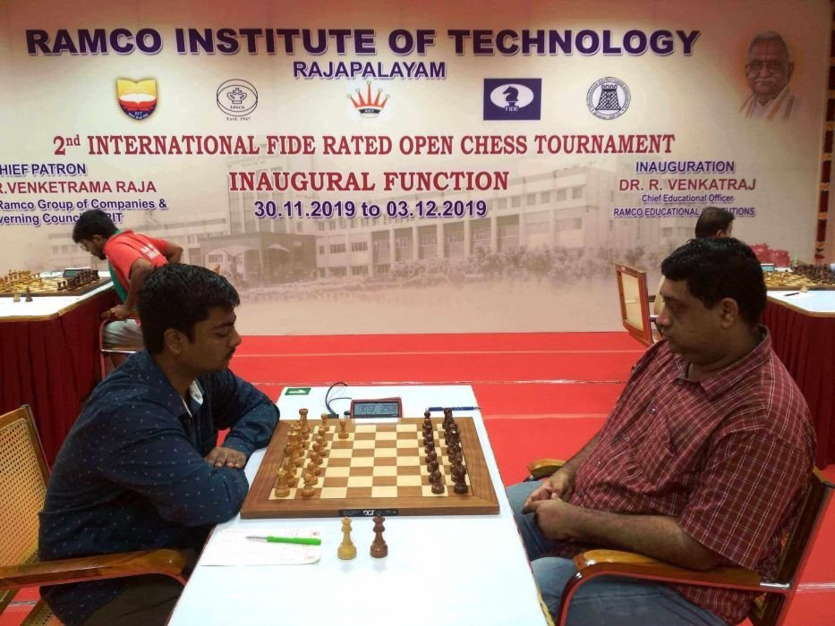 2019 Ramco Rated final round top board game between Balkishan of Karnataka and IM Harikrishnan